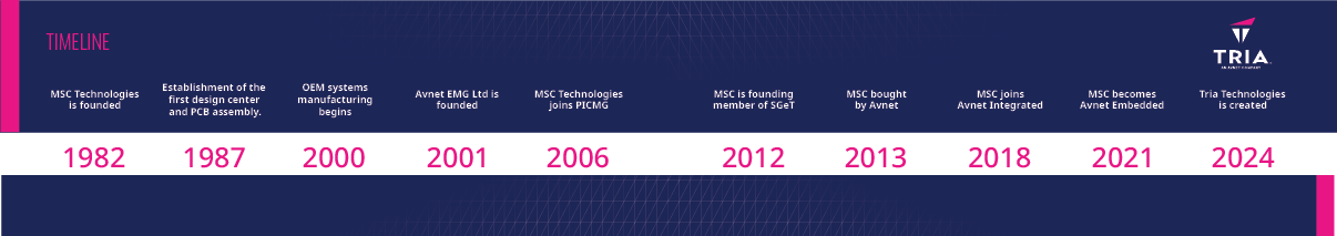 Tria Technologies designs, creates, and delivers embedded compute solutions for OEMs. Formerly MSC Technologies, we launched in 2024 as a subsidiary of Avnet, uniting decades of design and manufacturing expertise under a single global brand.