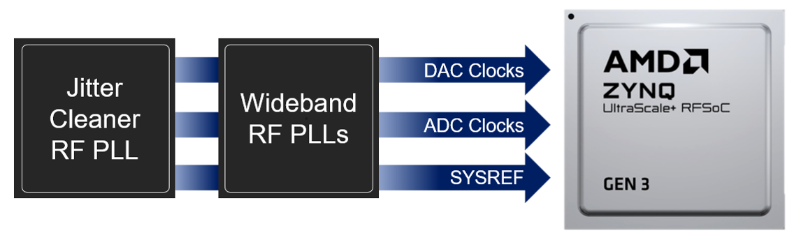 Maximizing the fidelity of AMD RFSoC giga-sample data converters requires precision clocking. XRF modules incorporate a cascade of best-in-class RF PLL clock synthesizers to offer programmability, ultra-low phase noise, and built-in synchronization.